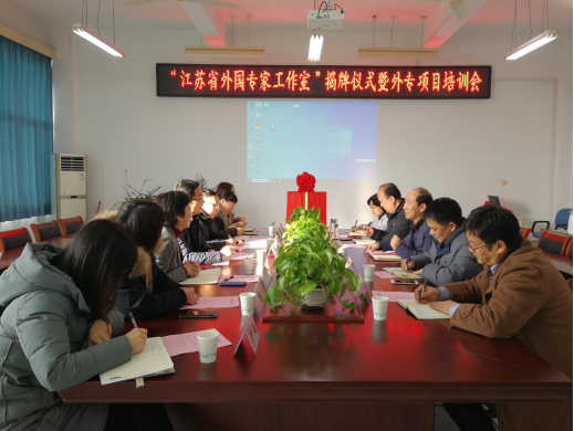 会上,范亚松副局长和缪泉明院长共同为我校获批的江苏省外国专家工作室揭牌。会后,杜强对外专项目申报进行了政策解读和辅导。