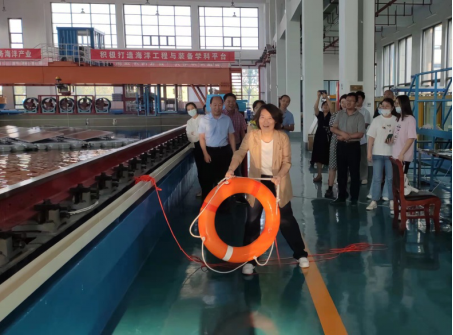 随后师生们来到海洋工程技术研究中心,丁克会老师讲解了救生圈的抛投使用方法和注意事项及保存要求,师生们进行了救生圈的抛投练习。也讲解了安全梯的使用方法和注意点,学生下水进行了安全梯的使用模拟演练。