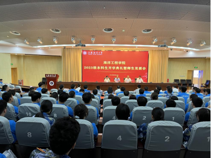 老生代表海资1211高熙昊分享了自己的学习感悟和体会,鼓励学弟、学妹们珍惜学习时光,积极适应新环境,尽早进入新状态。新生代表船舶1232潘瑞芸表达了对未来学习生活的憧憬和期待,要保持着一颗热爱之心,做有理想信念的海工人。