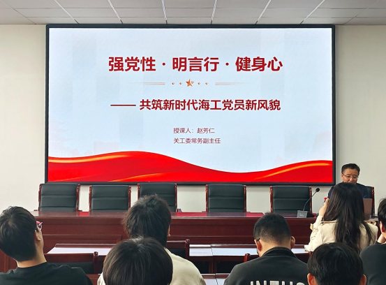 4月17日下午,海洋工程学院研究生党支部特邀学院关工委常务副主任赵芳仁开展“强党性 明言行 健身心”主题讲座。