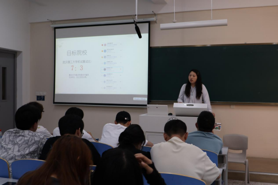 会上,朱老师深入剖析当前考研形势。她指出,尽管当下考研竞争日益激烈、挑战重重,但这既是压力更是淬炼意志的宝贵契机。同时,她还鼓励同学们将压力转化为动力,让每一份脚踏实地的付出,都成为叩响成功之门的坚实阶梯。