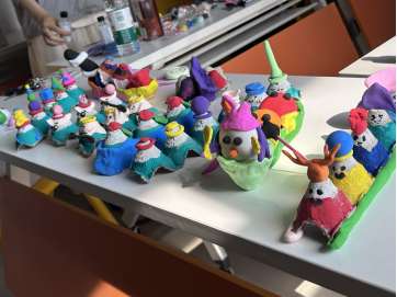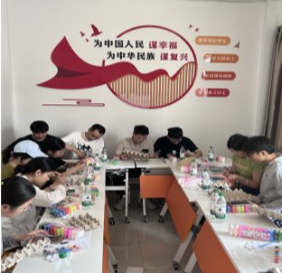 随后,活动进入DIY 环节。同学们被分成若干小组,每组领取了制作纸上龙舟的材料,包括水彩、剪刀、胶水等。同学们充分发挥自己的创意和专业所学,将船舶设计与制作技巧融入到龙舟的制作过程中。他们精心设计龙舟的形状,有的模仿古代传统龙舟的造型,有的则结合现代船舶的流线型设计,使其更具稳定性,一条条平淡无奇的纸质蛋托逐渐变成了一艘艘栩栩如生的纸质龙舟,每一艘龙舟都展现出独特的创意和风格。现场不时传来阵阵欢笑声,气氛温馨而热烈。