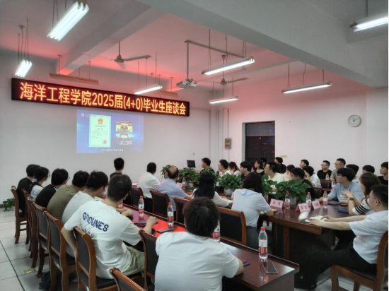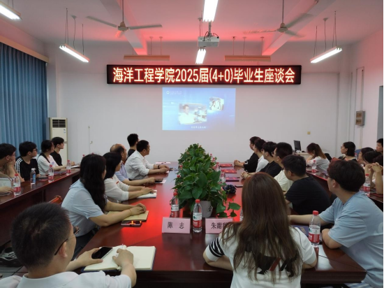 6月20日上午,海洋工程学院召开2025届联合培养“4+0”班毕业生座谈会。学院领导唐正康、王海、张会霞以及全体辅导员,江苏海事职业技术学院联合培养院带队老师张雪、冯炎及全体“4+0”毕业生参加会议。会议由副书记王海主持。