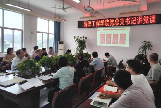 6月19日,海洋工程学院党支部书记唐正康为学院全体党员讲授党纪学习教育专题党课。学院全体教职工党员聆听党课并交流学习体会。
